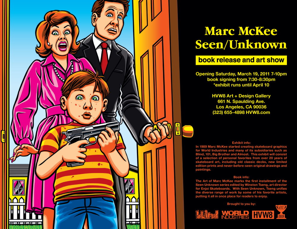 The Art of Marc McKee marks the first installment of the Seen Unknown series edited by Winston Tseng, art director for Enjoi Skateboards. Tseng has worked with some of today’s most genre-defying visual artists and designers whose work extends well beyond skateboard culture. . . With Seen Unknown, Tseng unifies the diverse range of work by some of his favorite artists, putting it all in once place for readers to enjoy.