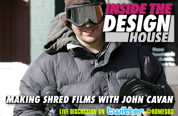 Ever wonder what actually goes into making a snowboard video? Well, wonder no more, or at least no more after this Friday September 4th, when Rome’s John Cavan, (Rome Team Manager, Filmer, Editor, Red Bull hoarder, video guy and at least a half a dozen other things on his business card) will be sitting down for the first “Inside the Design House Twitter Interview”.