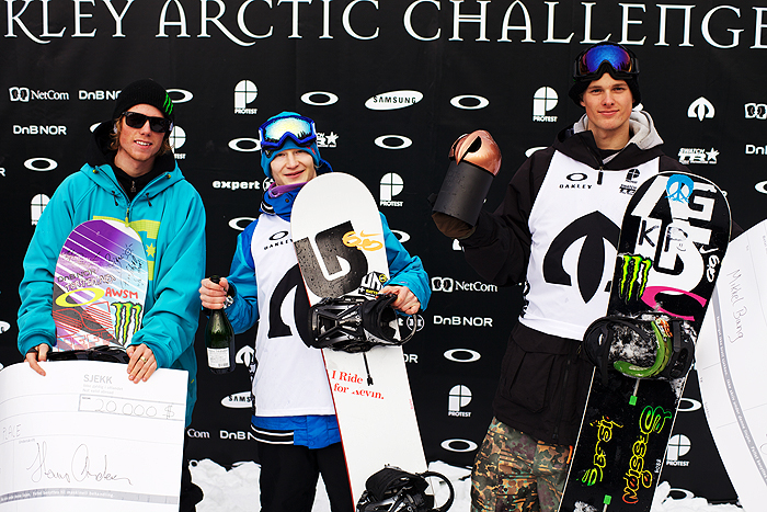 Oslo, Norway – March 7th 2010: One of the most impressive snowboard athletes in the world today, Peetu Piiroinen (FIN), reconfirmed his reputation with a first place finish at the coveted 6Star Oakley Arctic Challenge. Thousand of fans at Tryvann Vinterpark in Oslo, Norway witnessed a piece of snowboarding history as 21-year old Peetu Piiroinen took first place in today’s slopestyle competition, and with an additional 1000 TTR ranking points on his account, he took an unassailable lead in the TTR World Rankings. In two weeks time, he will be crowned Swatch TTR World Snowboard Champion at the final 6Star event of the Tour, the Burton US Open. The Arctic Challenge podium was rounded out by Norwegian favourites Torstein Horgmo in second place and Mikkel Bang in third.