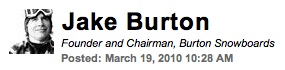 Arianna Huffington likes to talk about how she gets so many amazing people to write for her for free. And apparently, it works. The latest addition to her unpaid writers’ stable: Jake Burton. His topic for the Huffington Post is the Burton US Open. Not surprisingly, he loves it.