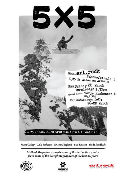 5×5 opens this Friday March 26, 2010 at 8:30 PM at the arl.rock Sport-park & Restaurant – Bahnhofstrasse 1 – 6580 St. Anton am Arlberg. According to the flyer Terje Haakonsen and Gigi Rüf will be in attendance.