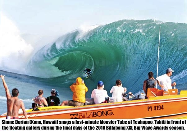 NEWPORT BEACH, CA – (March 23, 2010) – The annual event period for the Billabong XXL Global Big Wave Awards presented by Monster Energy coincided with the end of the Northern Hemisphere winter last Saturday – but a last-minute off-season swell slamming Tahiti has turned the competition upside down with a fresh influx of stunning big wave images. The largest waves seen there in three years (and some of the heaviest tubes ever photographed) heaved across the legendary reef at Teahupoo on March 17, scraping in under today’s final deadline for entering images into the XXL event.