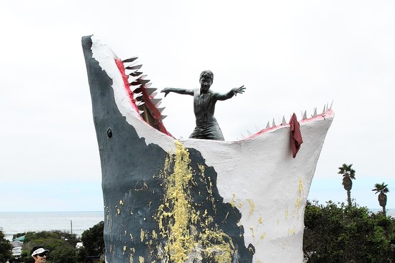 Recently, Mr. Hardtke topped his wave with a new piece: Just before dawn on July 24, he and a dozen friends carried the 15-foot shark—crafted out of papier-mâché over a wooden frame—a few blocks to the beach, installing it in just 15 minutes. Those were merely the final moments of a two-week project for Mr. Hardtke, who guesses he spent roughly $450 building the shark. . . Police have mostly ignored pranksters like Mr. Hardtke, and local officials have quietly praised the various Kook-inspired works because they bring attention to their tiny beach town. In fact, Mr. Hardtke recently learned the city has been storing his wave sculpture inside at a dusty warehouse that belongs to Paul Ecke Ranch, a grower of poinsettias and other flowers in Encinitas, Calif., the city which surrounds the community of Cardiff.