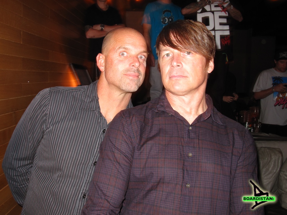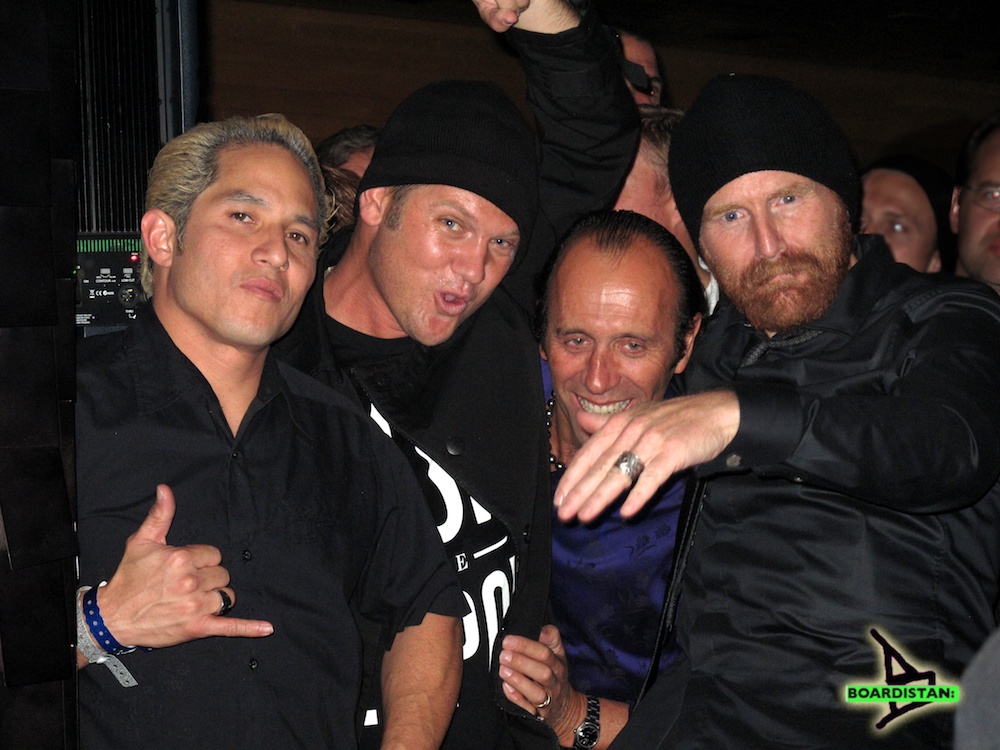 Christian Hosoi, Mike Carter, International Surfing Association President Fernando Aguerre, and Skullcandy founder Rick Alden backstage.