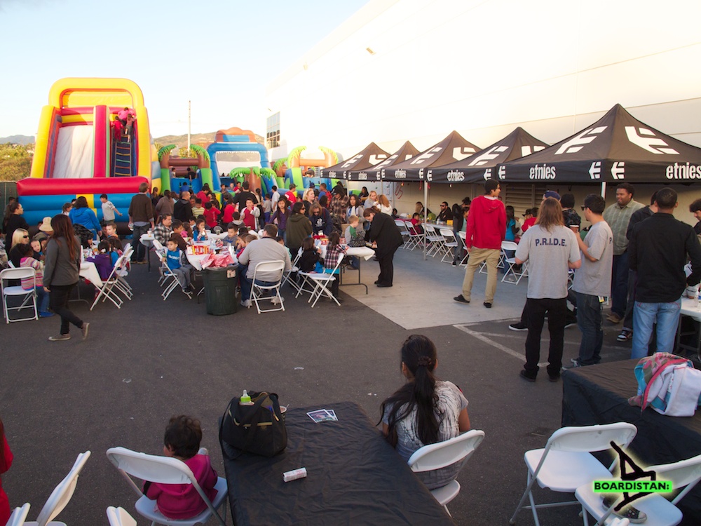 On December 16, 2010 etnies invited 580 kids from Orange County California Boys & Girls Clubs to come by the office and have a holiday party in the back parking lot. The event featured a mass of bouncy houses, appearances by Ryan Sheckler, Kyle Leeper, Devine Calloway and Tyler Bledsoe, and most importantly free brand new shoe.