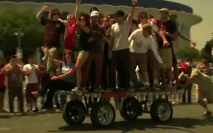 During filming for their new video the band Weezer have apparently broken five world records including the “most people on one skateboard” record by getting 22 people on one board.