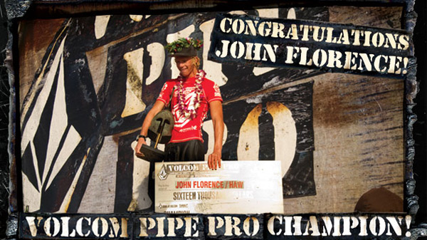 The final consisted of three Hawaiian Pipe specialists: John Florence, Jamie O’Brien and Aamion Goodwin, who met up with the lone Californian, Chris Ward for a spectacular final heat. John immediately pulled ahead of the pack within the first five minutes after two great Backdoor barrels, and then followed it up with a 9.93 at Pipe just moments later to secure the lead for the 2011 Volcom Pipe Pro.