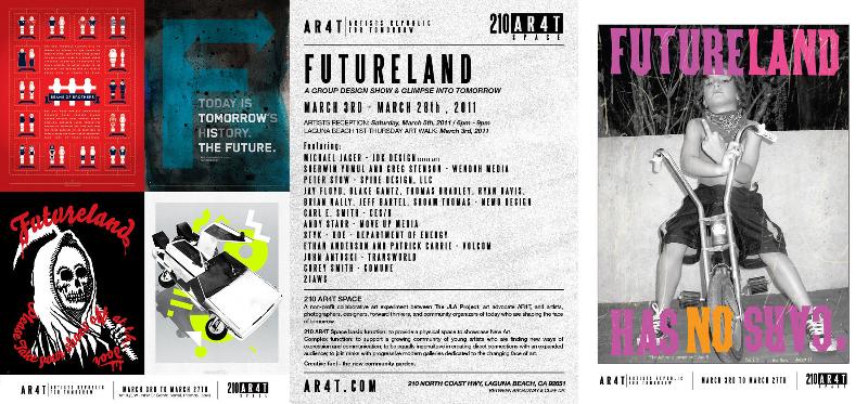 Laguna Beach, Calfironia’s 210 AR4T Space is hosting an artist reception for their show Futureland on Saturday night, March 5, 2011.