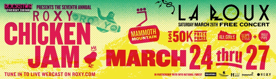 This weekend baby Mammoth Mountain won’t be bullet proof, but La Roux will be for the Seventh Annual Roxy Chicken Jam March 24-27, 2011.