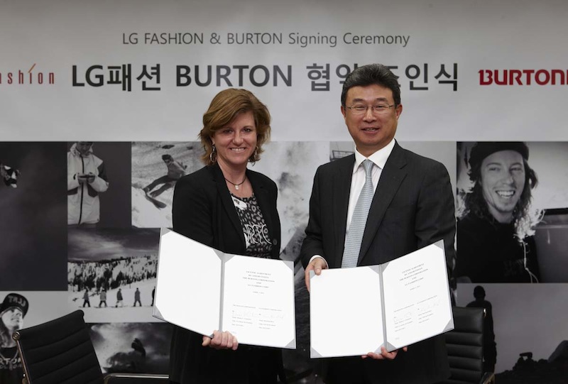 To celebrate the new partnership, LG Fashion invited Burton Snowboards’ Co-Owner Donna Carpenter to a ceremony in Seoul this week where executives from the two companies officially signed the agreement.