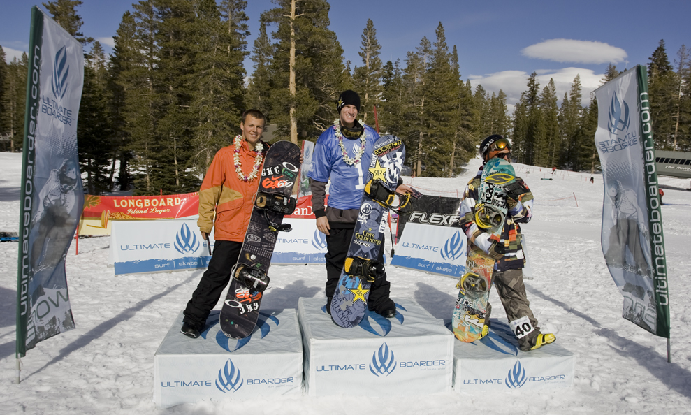 Stage 1 of the 4th Annual Ultimate Boarder snow, surf, skate triathlon wrapped up under blue skies at Mammoth Mountain on Saturday, April 2, 2011 with Chas Guldemond edging Mammoth loc and defending snowboard champ Trevor Jacob for the title. Shayne Pospisill finished third.