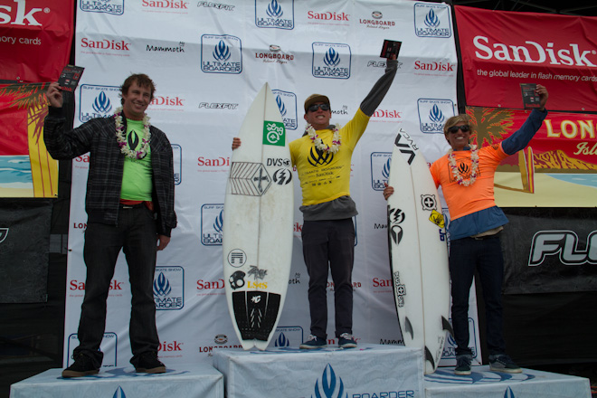 Santa Barbara, California (April 7, 2011) – Stormy waves with sets about head high at Seaside Reef in Cardiff, Calif. provided challenging conditions for all the 36 surfers, skaters and snowboarders who competed at Stage 2, the surfing leg, of the Ultimate Boarder® Championship.