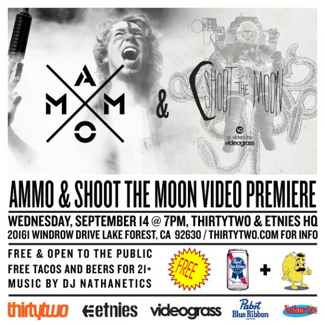 Wednesday, September 14, 2011 is shred movie night at the ThirtyTwo headquarters in Lake Forest, California. Ammo and Videograss’ Shoot The Moon (click for the teaser) are premiering and there will be free food. What more can you ask for?
