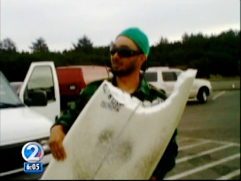 Bobby Gumm, 41, was surfing with friends at Newport, Oregon’s South Beach on Thursday morning , October 20, 2011, when the water beneath them began churning, according to a story on KHON2.com.