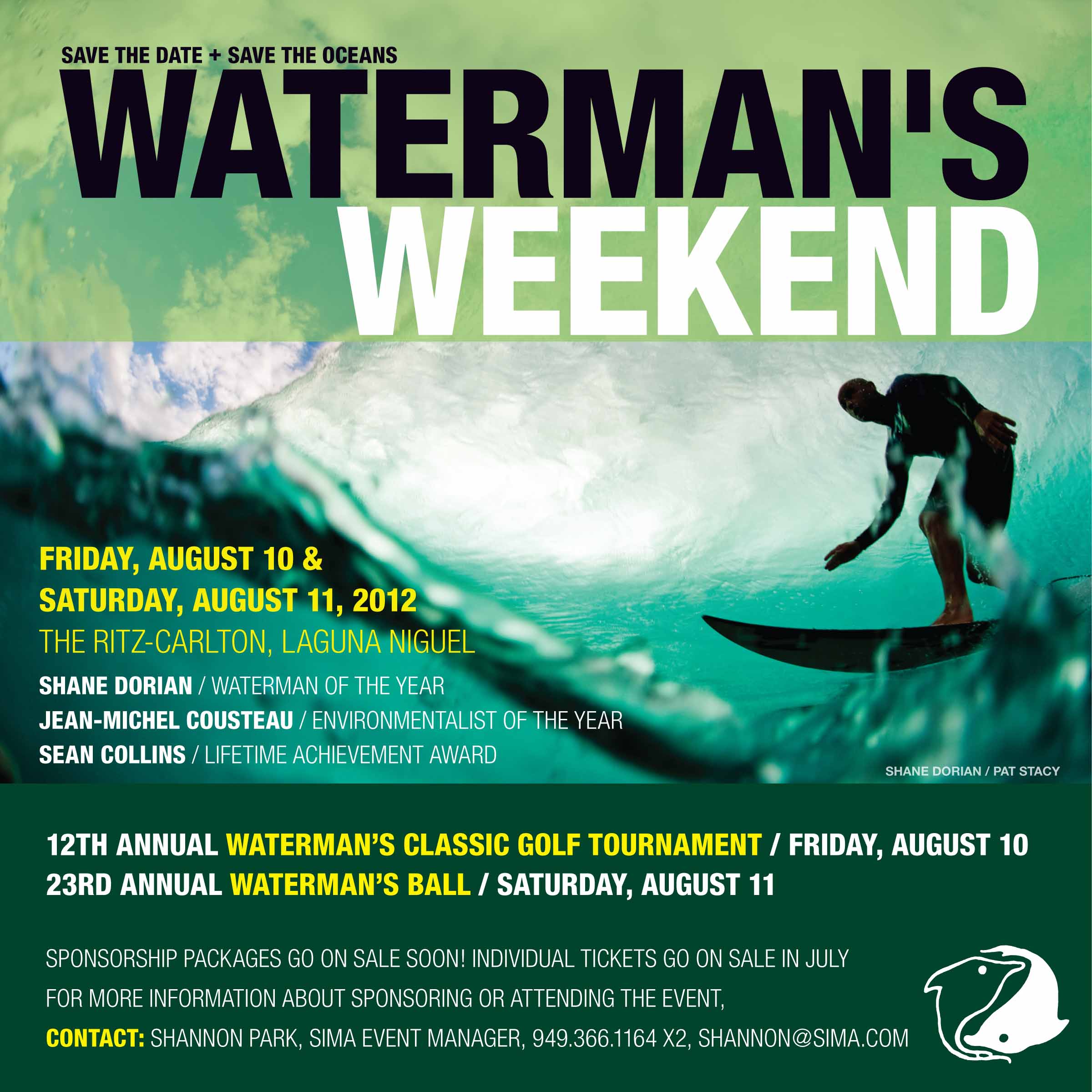 Sponsorship packages for both the 2012 Waterman’s Golf Classic and Waterman’s Ball will be on sale in late April. Individual tickets for the Waterman’s Ball are scheduled to go on sale in June. For more information or to reserve a sponsorship package, please contact Shannon Park, SIMA Event Manager, by calling (949) 366-1164 x 2 or by e-mailing shannon@sima.com.
