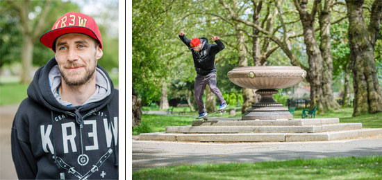 Despite growing up on the east coast of England in Great Yarmouth (“basically in the middle of nowhere”), Chewy fell deeply into skating, and, like any true skater, found a way to make it happen. “There was never really fuck all to skate and the skate scene was tiny, but we were all pretty productive. We made spots, we had a camera about early on, so we was always makin’ videos and day trips. That was some of the best times when I think back.”