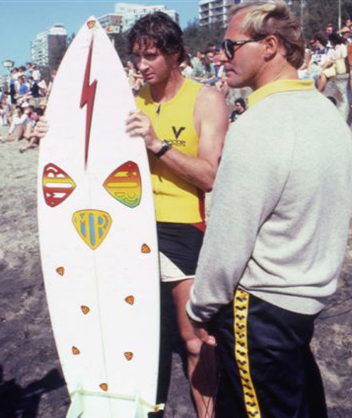 As a 4X ASP World Champion, MR’s competitive track record is incredible. Some of his career highlights include winning the Rip Curl Pro at Bells four times; he’s a four time finalist in the Duke Kahanamoku Invitational (winning in ’79); and he’s a four time Pipeline Masters finalist (winning in ’80). MR retired in 1982, but in 1985 entered and won the Billabong Pro held at Waimea Bay and Sunset Beach, then successfully defended his Billabong Pro title at Sunset Beach in 1986 .