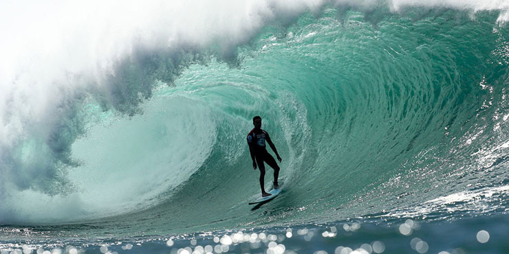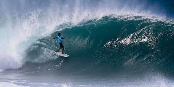 The true star of day two was Pipeline’s favorite son, John John Florence. The 8th heat saw a perfect pairing of phenomenal waves and supernatural talent that unfolded before a highly charged beach crowd. It fast became a 25-minute Florence super session as he clocked up four incredible tube rides in succession: 9.3, 9.53, 9.73, and 9.97. His top two scores delivered the highest heat total of the competition so far – 19.7 points out of 20.