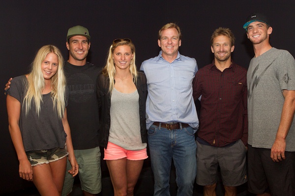 Look at all those happy, smiling faces. It’s Laura Enever, Joel Parkinson, Lakey Peterson, newly-appointed ASP CEO Paul Speaker, newly-appointed ASP Interim Commissioner Kieren Perrow and Brett Simpson. And what are they smiling about? The start of the new season? The demise of Quiksilver and Billabong? No, apparently they’re smiling because things are looking up at the ASP, and the fans are going to be number one. ZoSea Media says so.