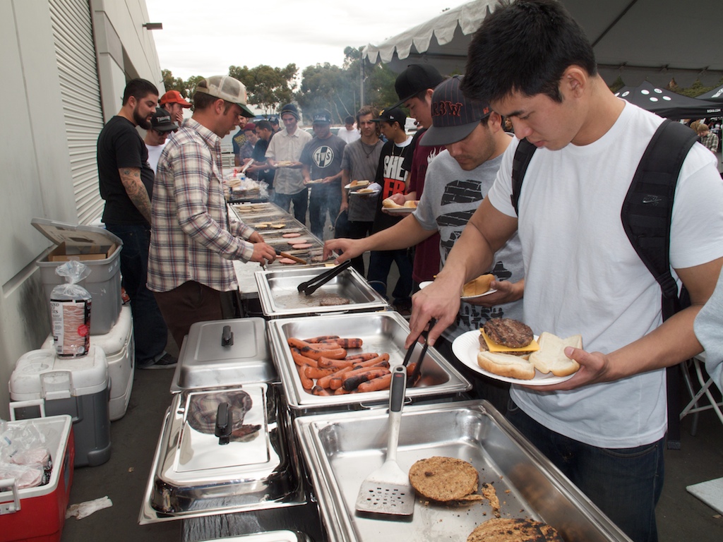 At 10:15 AM it was difficult to find a parking spot anywhere near Jamie Thomas’ Black Box Distribution headquarters on the outskirts of Carlsbad. And by 11:30 AM when the free burgers began rolling off the grills the booths were packed with retailers, distributors, and Industry friends.