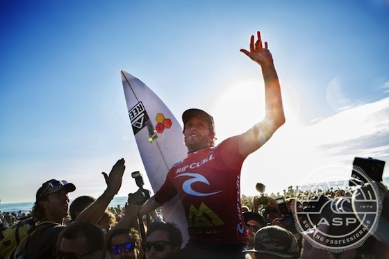 Kai Otton, may have won the 2013 Rip Curl Pro Portugal today over American Nat Young (in tiny surf), but the bigger news is that after dispatching Mick Fanning in Quarter Final two, Otton pushed the ASP World Title race between Fanning and Kelly Slater to the Banzai Pipeline in December. While we were all thinking about the ramifications of that, Otton was reveling in the moment of a win that was a long time coming.