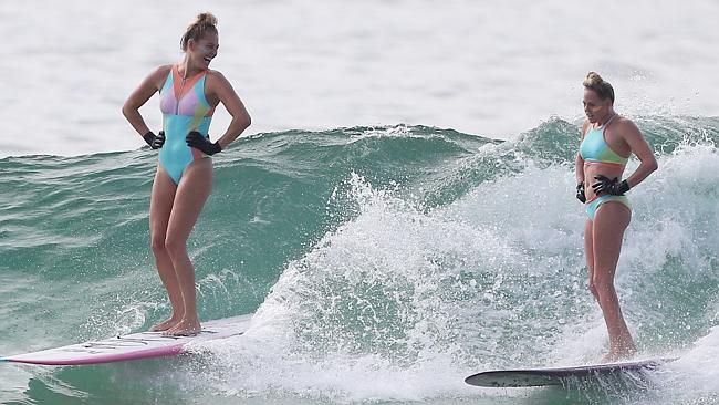 What we hope everyone learned from the above photo, however, is that it’s very difficult to look good surfing next to Stephie. . . even if you’re Laura Enever. More after the jump via The Courier Mail.