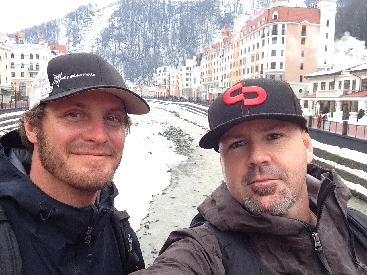 Johnnie Balfour (right) is a snowboard cross course builder from Australia by way of Canada. He helps build FIS World Cup snowboard cross courses and is now in Sochi, Russia to help build the courses for the 2014 Winter Olympics (which begin in two weeks).