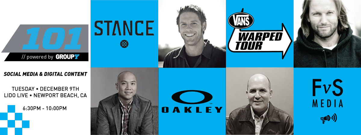 Guest at this first round event will include Stance’s Nick Tran, Oakley’s Director of Digital Marketing Scott Alexander, Vans Warped Tour Director of Marketing & Strategy Paul Kersh, and FvS Media Founder Fred van Schie. For the official word from Group Y, please follow the jump.