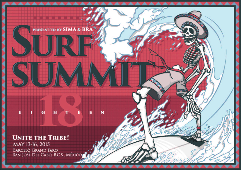 Well, this will make you feel like an old industry salt: The Surf Industry Manufacturers’ Association & Board Retailers’ Association is hosting their 18th Annual Surf Summit at the Barcelo Grand Faro in San Jose Del Cabo, BCS, Mexico May 13-16, 2015. Eighteenth? Seriously? Well, if you work in the surf industry mark it on your calendars and please, please, please don’t read too much into the fact that the Surf Summit 18 logo features a skeleton in surf trunks. It’s only a cool graphic. Seriously.