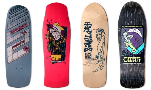 Dave Bergthold, the creative mind behind Blockhead Skateboards, is sneaking out a small run of reissues of some of Blockheads most iconic designs. Included in this limited edition collection is the Streetstyle, Sam Cunningham’s pro model, the Hard Times, and Omar Hassan’s Pro model. The boards feature artwork by legendary skateboard graphic artist Ron Cameron. The decks are available for pre-order now and will ship in July. Click the link to order.