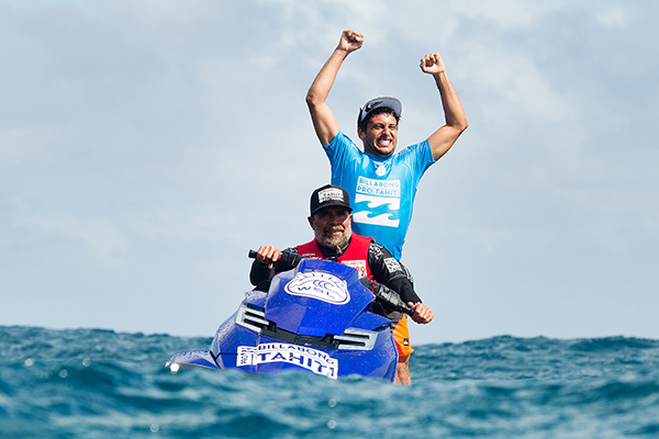 TEAHUPO’O, Tahiti (Tuesday, August 25, 2015) – Jeremy Flores (FRA) has won the Billabong Pro Tahiti in the Final bout against reigning WSL Champion Gabriel Medina (BRA) held in six foot surf at Teahupo’o. Stop No. 7 of 11 on the 2015 Samsung Galaxy WSL Championship Tour (CT) has been treated to incredible performances by the world’s best surfers, culminating today with Flores’ win.