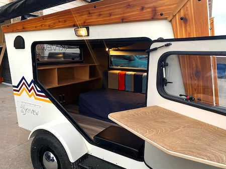 An entirely unique, innovative, and lightweight pull behind tiny home camper. Inspired by mid-century modern architecture contained in a minimal footprint. The SkyView’s design boasts a modern shape that makes the most efficient use of space. Completely different than anything else available.