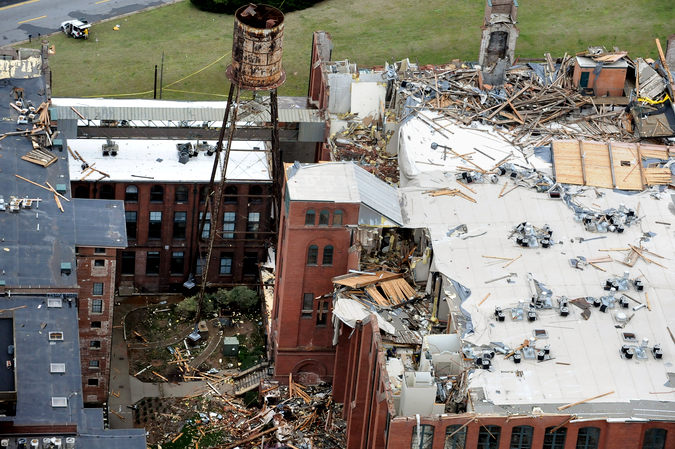 Poythress’ apartment window is the fourth from right in the bottom right hand corner of this Atlanta Journal-Constitution photo. “The tornado touched down on top of the place and ripped the whole roof off,” he said. “My new flat screen would’ve been laterd.”