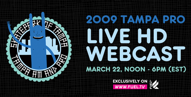 Make sure to check out the FUEL TV webcast of the 2009 Tampa Pro on Sunday, March 22, 2009 from 12:00pm ET to 6:00pm ET.