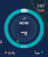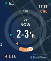 So, about 30 minutes after jumping through all their account linking hoops, the wave height again showed up on our watch. Now, with a “Powered by Surfline” logo in the lower right hand corner. Notice the wind speed that used to be on the bottom right corner? It moved to the upper left to make room for Surfline branding. Is that was this was all about? Creating more Surfline accounts and placing a logo? Looks like it.