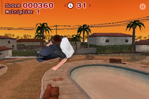A kickflip requires swiping two fingers to the left somewhere on the screen. The rest of the tricks are combinations of swipes in one direction or the other. While we did have some trouble with the swipes registering (and twice swiped right on to the home button turning the game off in a record setting run). After a few runs it all smoothed out and we were busting out wizardry straight out of the Pro-Tech Pool Party.