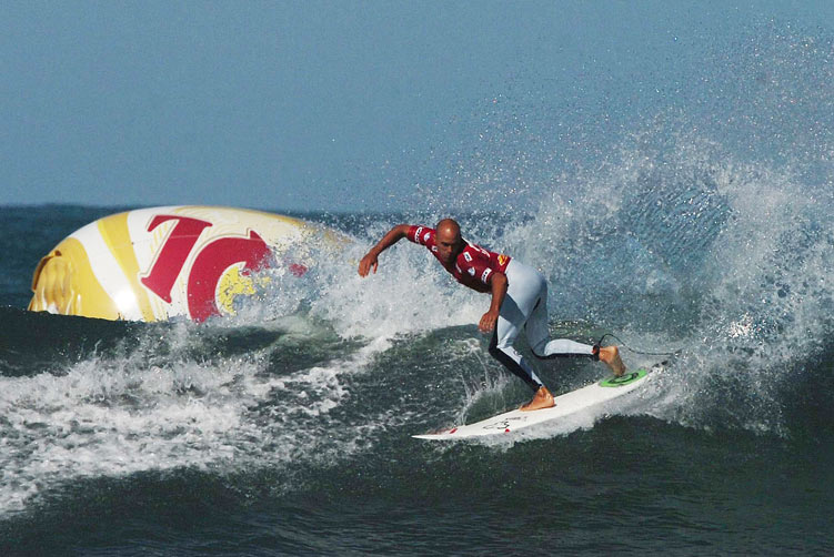 Kelly Slater actually made it out of a round 3 heat against Ben Dunn on one of his own boards in the Hang Loose Santa Catarina Pro (stop number four on the 2009 ASP WCT). According to the ASP press release it was a “self-shaped, asymmetrical quad-fin.”.