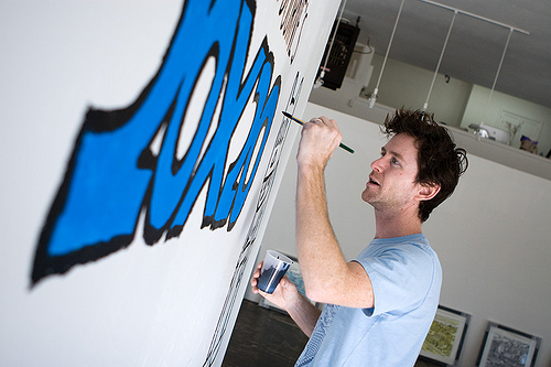 Get a sneak peek at Randy Laybourne’s 20×20 show on Flickr from photographer Lauren Dillon. And then roll over to Swiv Tackle Circus Oceanside, California tomorrow night (January 17, 2009) from 6 – 10 PM. The evening will features music by DJ Blackass and friends and Stone Brew will be served.