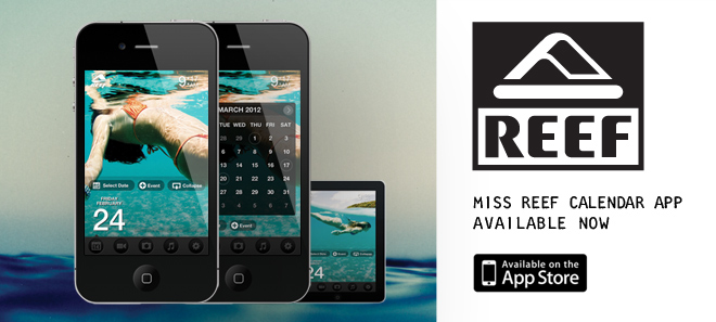 (Carlsbad, CA) April 4th – 2012 – Reef is proud to release the first ever Miss Reef Calendar App over two decades after the first Miss Reef calendar went to print. The new app, available now on iTunes for $.099, allows users to automatically synch up with their iCal Calendar and offers exclusive access to other Reef generated content.