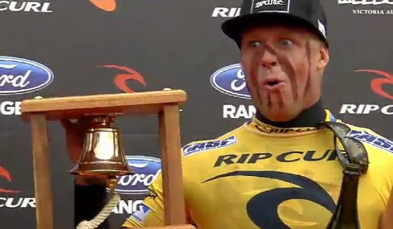 BELLS BEACH, Victoria/Australia (Friday, April 6, 2012) – Mick Fanning (AUS), 30, has claimed the 2012 Rip Curl Pro Bells Beach presented by Ford Ranger over reigning 11-time ASP World Champion Kelly Slater (USA), 40, in offshore three-to-five foot (1 – 1.5 metro) waves at Bells Beach.