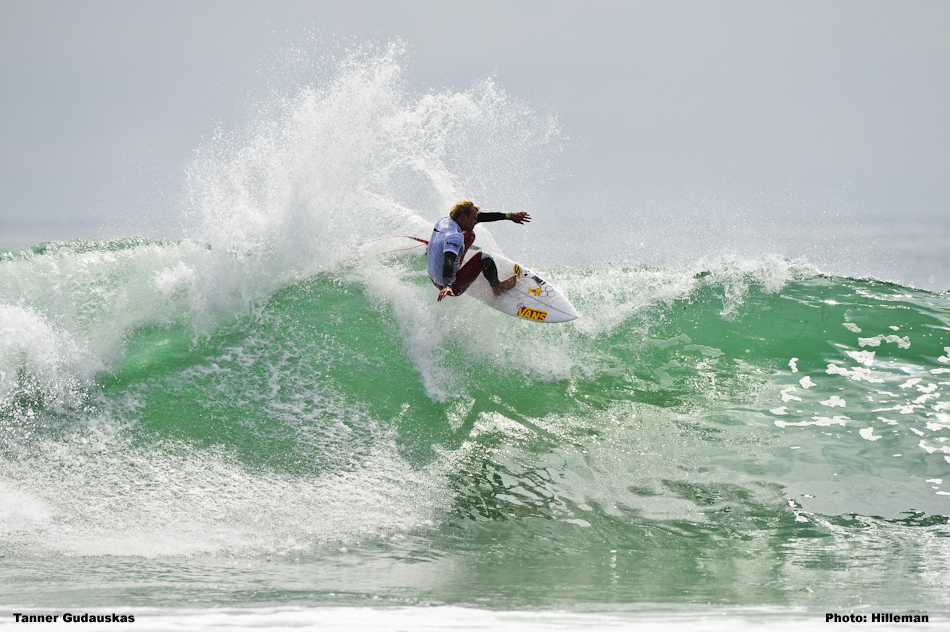 Tanner Gudauskas (San Clemente, CA), 23, carried the torch for the Lower Trestles local contingent, unloading a series of ferocious forehand turns to take one of the day’s highest single-wave scores, 9.27 out of 10, en route to an exceptional heat total of 16.77 out of 20.