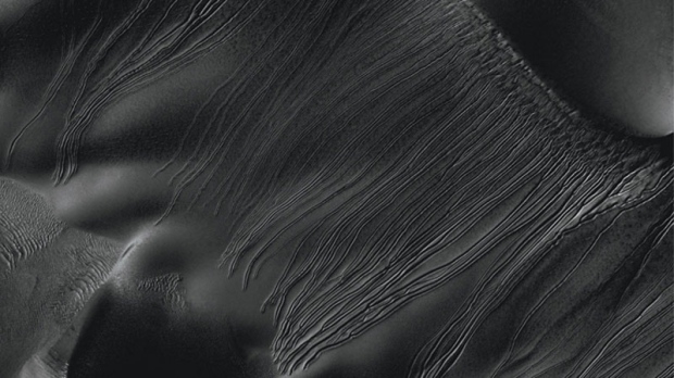 NASA planetary scientist Serina Diniega believes she has figured out what made all those first tracks (a.k.a. linear gullies) that have been showing up on photos from Mars lately. They look like snowboard tracks and seem to have been formed by something sliding down the dunes. Diniega figured it out.