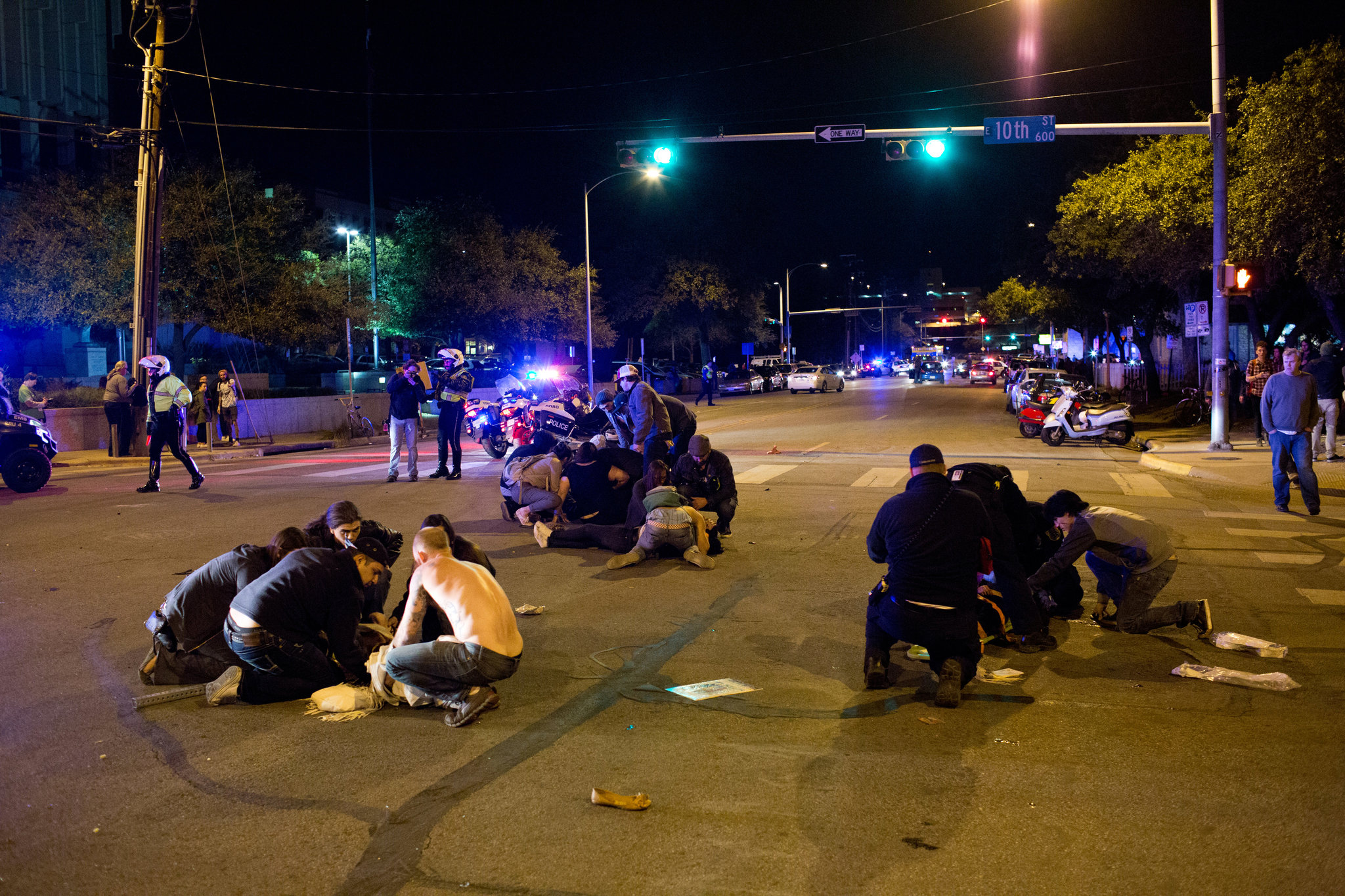 The Austin police chief, Art Acevedo, told reporters that officers on the lookout for drunken drivers had tried to pull the motorist over about 12:30 a.m. at a service station near the clubs and other venues that were hosting events related to the annual cultural and technology festival. . . But the driver suddenly sped off, Chief Acevedo said, heading the wrong way down Ninth Street, a one-way street in downtown Austin, before turning onto Red River Street, where he rammed through a police barricade and struck several vehicles, including a moped and a taxi, in addition to hitting the pedestrians. A police officer stationed at the barricade narrowly avoided injury.