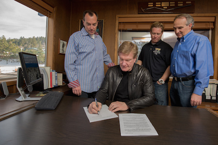 With that pen Mammoth Mountain CEO Rusty Gregory officially tied together all the lose ends in Mammoth’s plans to own Southern California mountain recreation. Mammoth now owns Bear Mountain and Snow Summit. Sure, Mtn. High and Snow Valley are still running lifts, but you know what we mean. Gregory, however, is much more poetic about it.