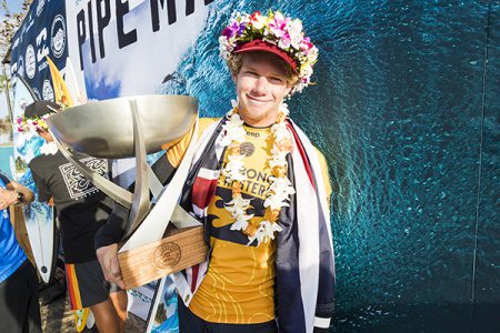 Caption: Newly crowned World Champion John John Florence (HAW) claims a runner-up finish at the Billabong Pipe Masters.