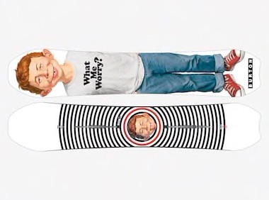 Burton Snowboards has lined up Alfred E. Neuman and Spy vs Spy on the Deep Thinker and Free Thinker snowboards. If you’re wondering who these people are, they’re from an old humor magazine. Those who know will get a real kick out of the boards. Click the jump to see them.